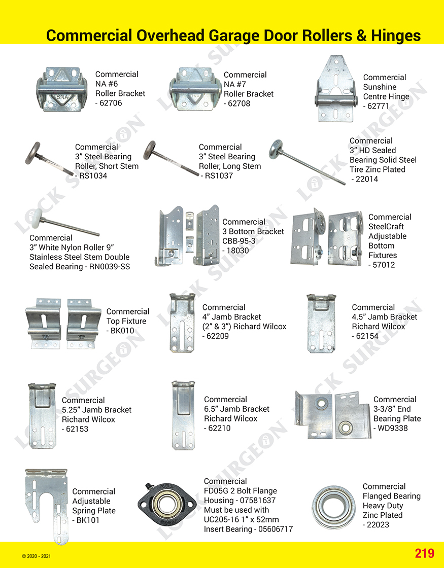 Lock Surgeon carries a large variety of commercial garage door parts.